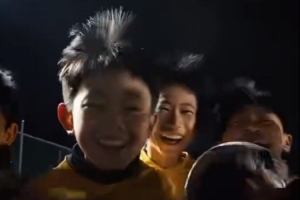 青岛西海岸梯队少年们为U23国足送祝福:我们也想为国争光!