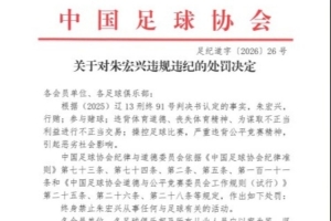 体育资讯1月29日讯 今日,中国足协正式公布了“假赌黑”专项整治行动受处罚的人员名单,朱宏兴因行贿、参与赌球、操控比赛等,被判终身禁止参与足球活动。