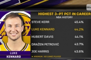 历史最准三分手:科尔45.4%第一 肯纳德44.2%第二 乔·哈里斯第五