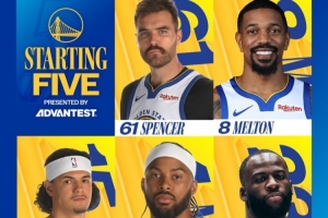 赛前勇士官方更新了本场球队首发:斯潘塞、梅尔顿、桑托斯、穆迪、追梦。