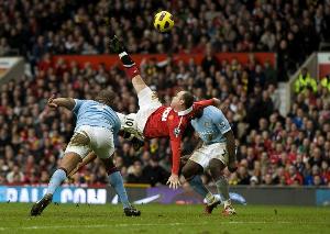 体育资讯2月12日讯 在2011年的2月12日,英超曼市德比,比赛的第78分钟,鲁尼接纳尼的传中,不等球落地直接倒钩破门。最终曼联凭借此球,2-1战胜了曼城。