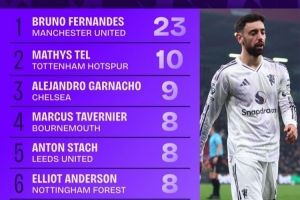 3月英超球员创造机会排行:B费23次居首,特尔、加纳乔列二三位