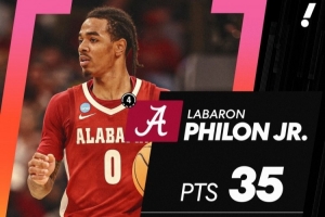 阿拉巴马不敌密歇根止步16强 热门秀后卫菲隆21中10空砍37+5+4