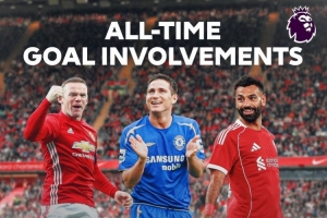 英超参与进球数第二多的是鲁尼,共计208球103助攻,参与311球,目前第三与第二之间相差32球。