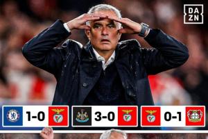 穆里尼奥时隔5年半回归欧冠,遭遇欧冠3连败,先后客负切尔西和纽卡、主场输给勒沃库森,丢5球一球未进。