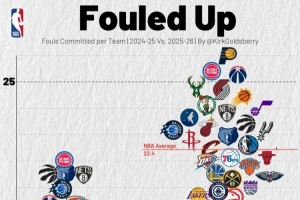 上赛季联盟各队场均罚球数为19.1次;本赛季该数据为22.4次。(数据截至今日赛前)