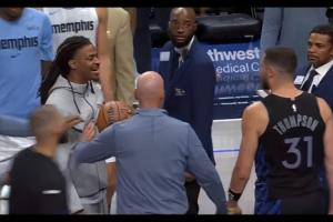 赛后,因伤高挂免战牌的灰熊球星莫兰特在场内和独行侠老将克莱发生冲突,随后被制止。