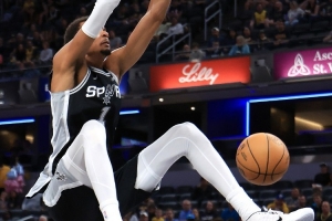 体育资讯10月18日讯 NBA季前赛,马刺半场66-63领先步行者。