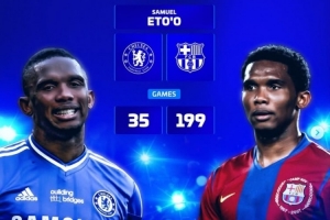 埃托奥:切尔西35场、巴萨199场