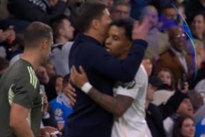 体育资讯12月11日讯 皇马vs曼城,罗德里戈上半场破门,进球后一段时间转播回放镜头,罗德里戈进球后拥抱了阿隆索!