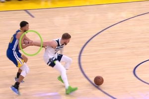 GIF-库里逼迫迪文岑佐失误,森林狼挑战成功,改判库里犯规