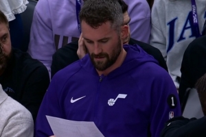 首节比赛,爵士老将乐福表现出色,替补上来很准,在6分钟的时间里,投篮4中3,三分球2中2,拿到8分4篮板1抢断的数据。