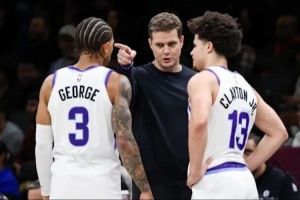 上赛季,爵士队主教练威尔-哈迪很不满意乔治在场上的竞技状态,防守端梦游,还总是因为精神不集中出现低级失误。哈迪一度忍无可忍,把他摁在了替补席。