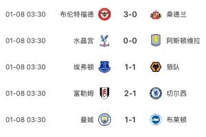 本轮英超,曼城、曼联均战平,切尔西和热刺都输球。此外,维拉也战平水晶宫。