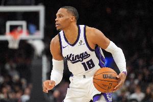 国王球员威少上半场依旧打得十分积极,在远投手感不佳的情况下,多次尝试冲击内线拿分。