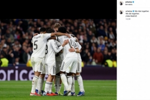 体育资讯1月21日讯 欧冠联赛阶段第7轮,皇马主场6比1击败摩纳哥。赛后,皇马主帅阿韦洛亚更新社媒晒照激励球队。